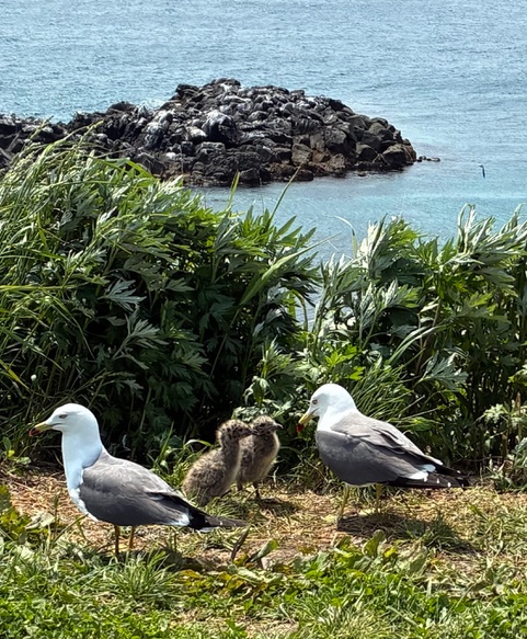 ウミネコの家族。子どもになにをおしえているのだろう?