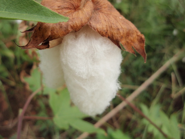 (打ちわたを見せながら)これは、わたしが畑で育てて、わた屋さんで打ってもらった「わた」です。さわった感触が、シジュウカラのひながいた寝床ととても似ているので、皆さんにさわってもらいたいと思って、持ってきました。手の中で、じっと感触を味わってみてください。このわたの柔らかな感触に比べると、優しい手の感触さえも堅いと感じる柔らかさです。